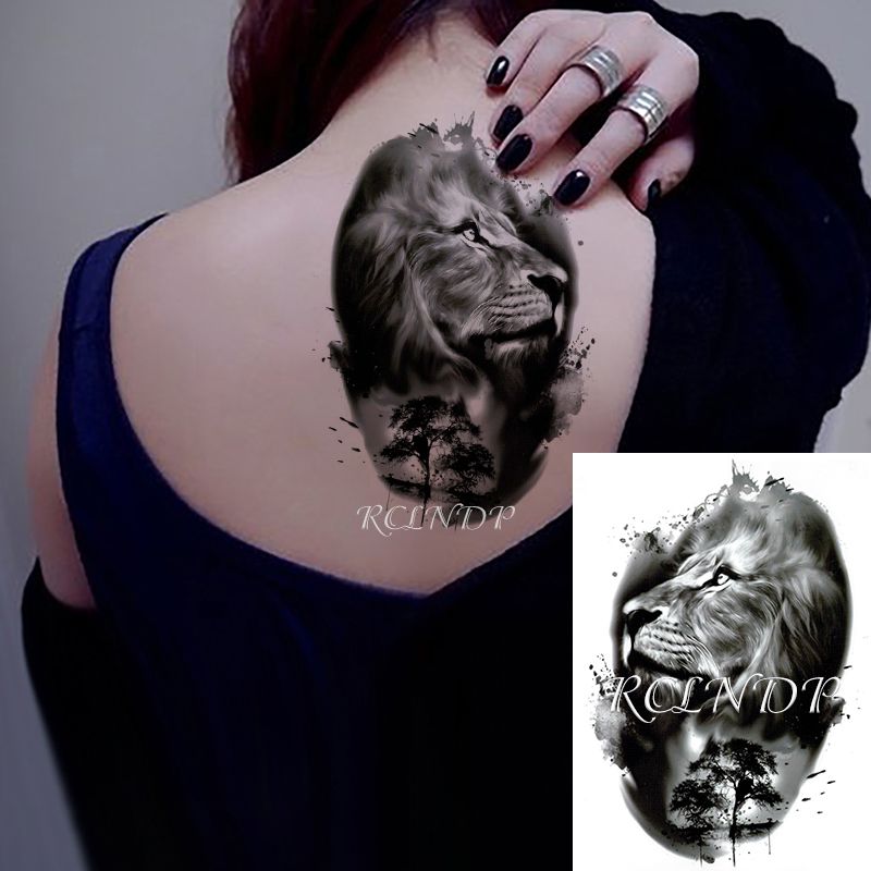 Falso Impermeable Tatuaje Temporal Etiqueta Rey Leon Bosque Grande Arbol Animal Tatto Flash Tatoo Brazo Hacia Atras Arte De La Pierna Por Hombres De Las Mujeres Por Hirame 31 37 Es Dhgate Com