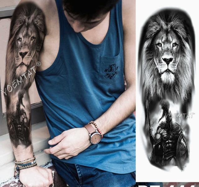 Tatuaje Temporal A Prueba De Agua Pegatina Leon Virgen Brazo Completo Color Tatuaje Falso Tamano Grande Flash Tatuaje Manga Tatuajes Para Hombres Mujeres Tatuajes Temporales Aliexpress