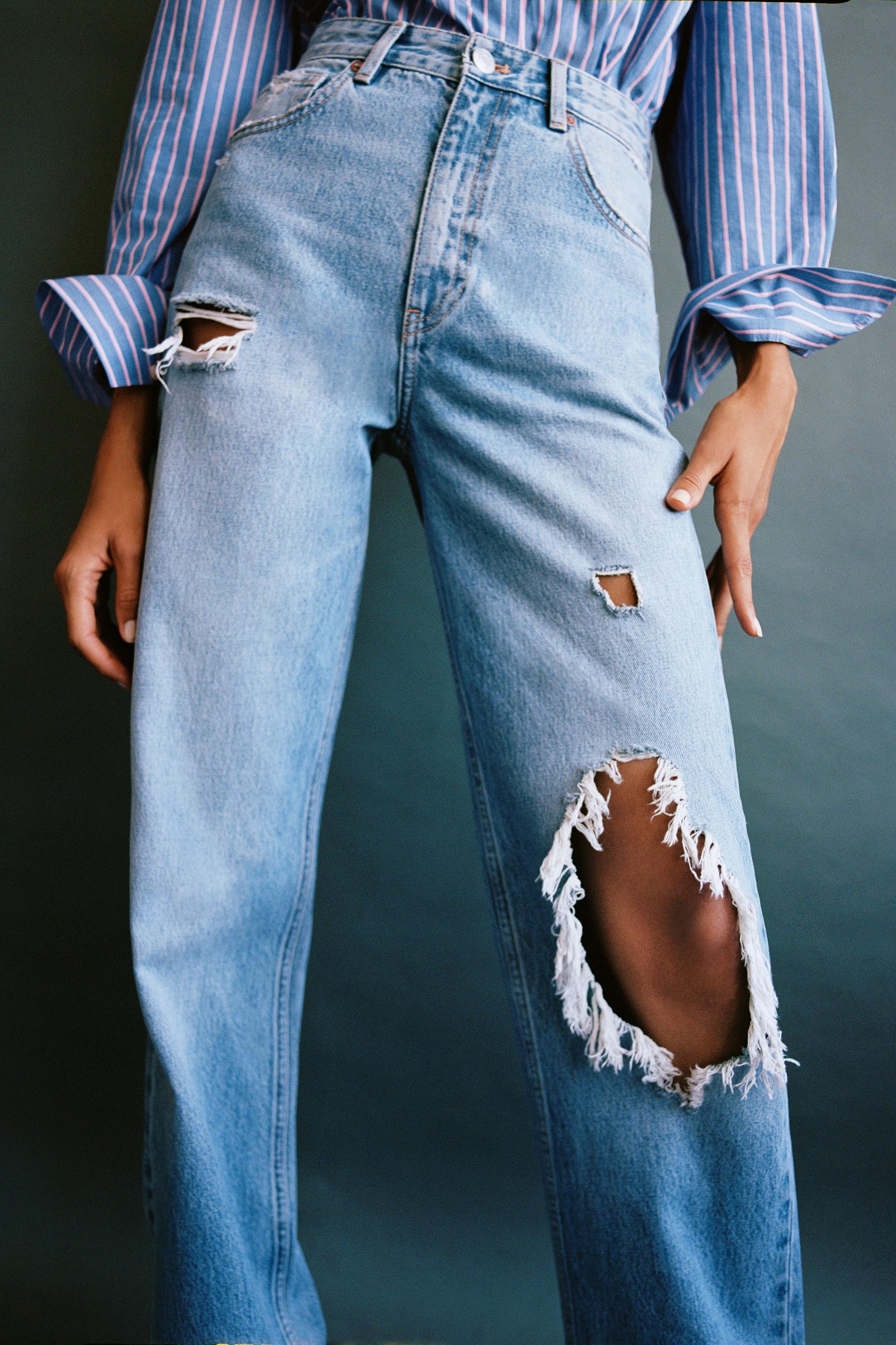 Zara Wide Leg Full Length Ripped Jeans 97858831 427